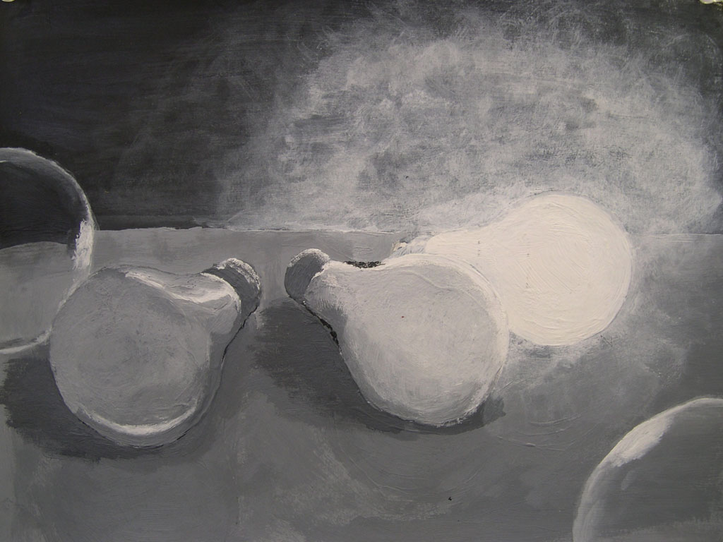 Medium and Requirements: One acrylic painting in full greyscale 1-10 on 9” x 12” bristol.