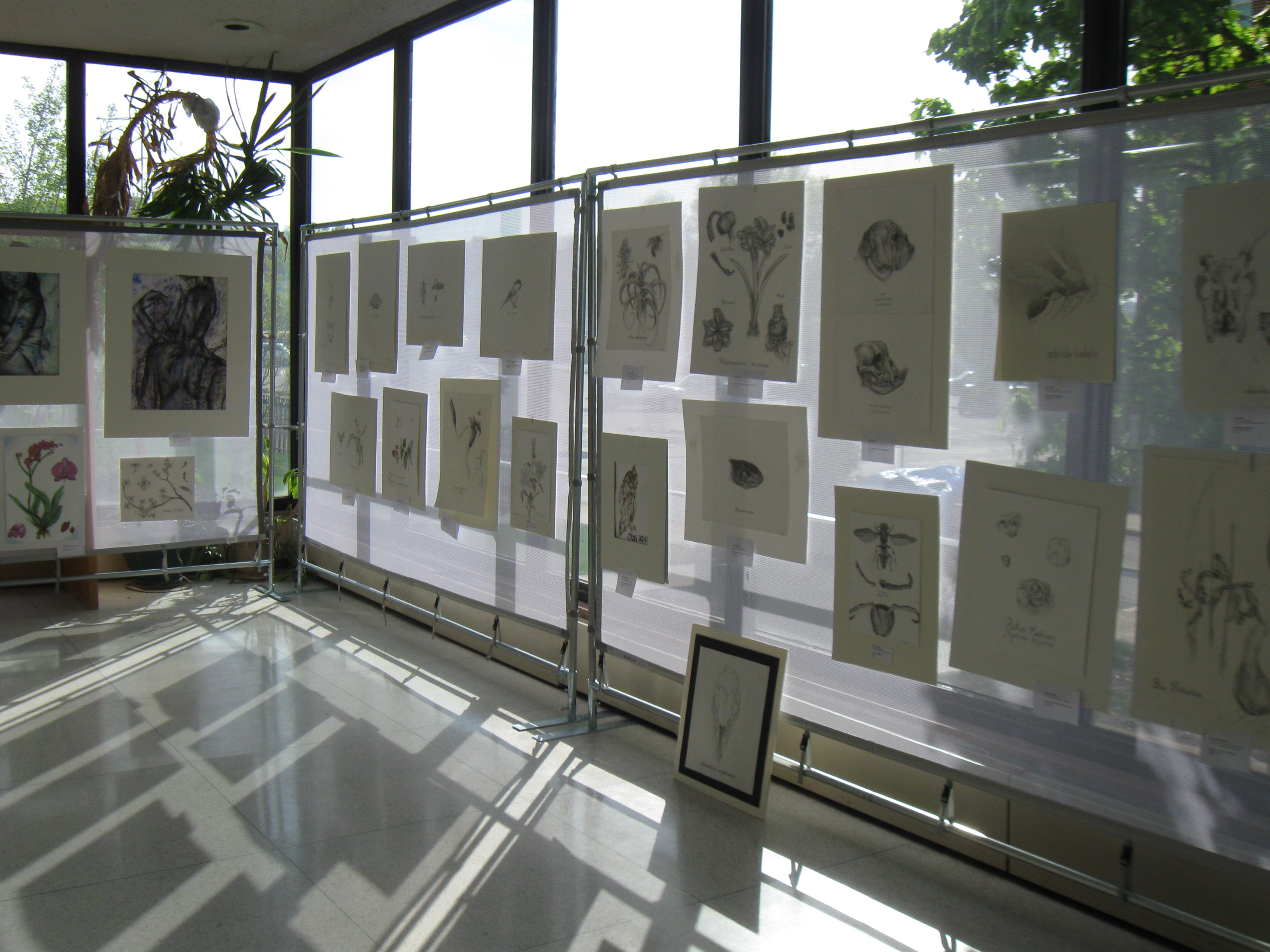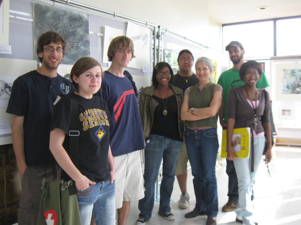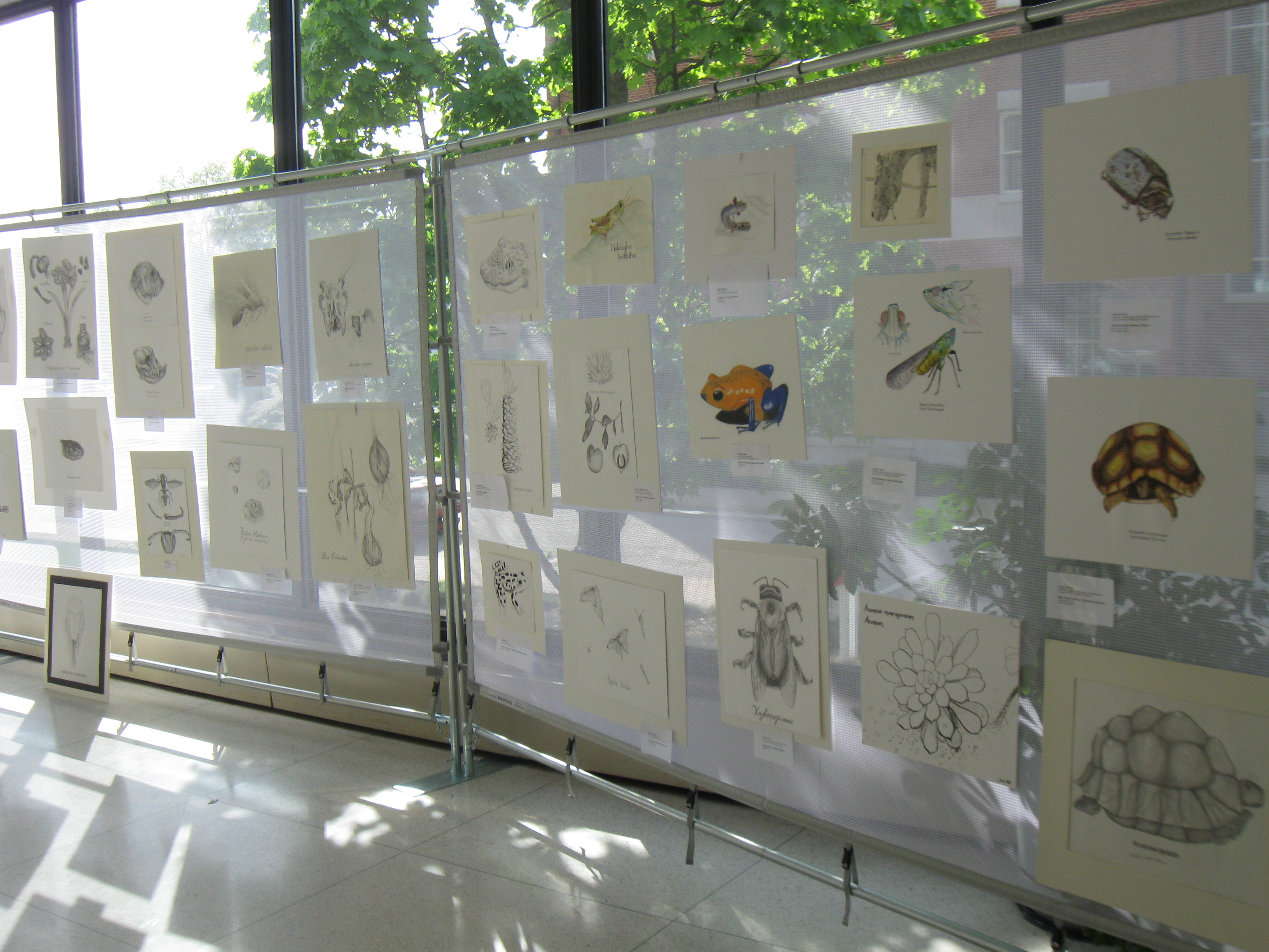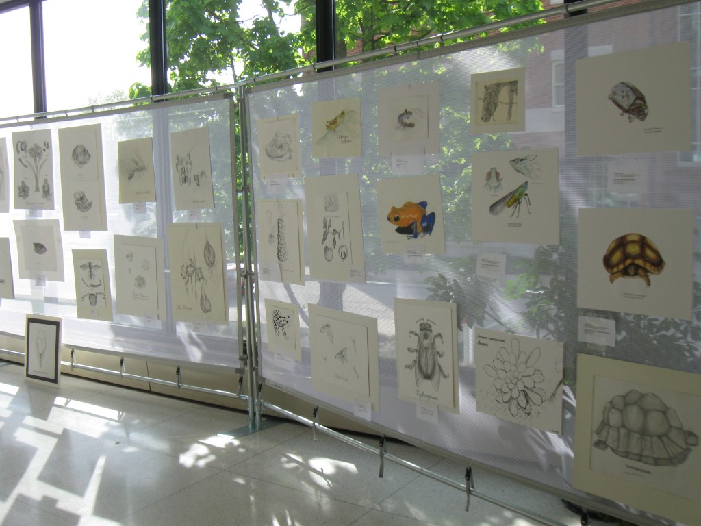 Students from Art / Bio 130 at the exhibition Biological Illustrations from the Frich Biology Collection, Frich Lobby, 2010.
